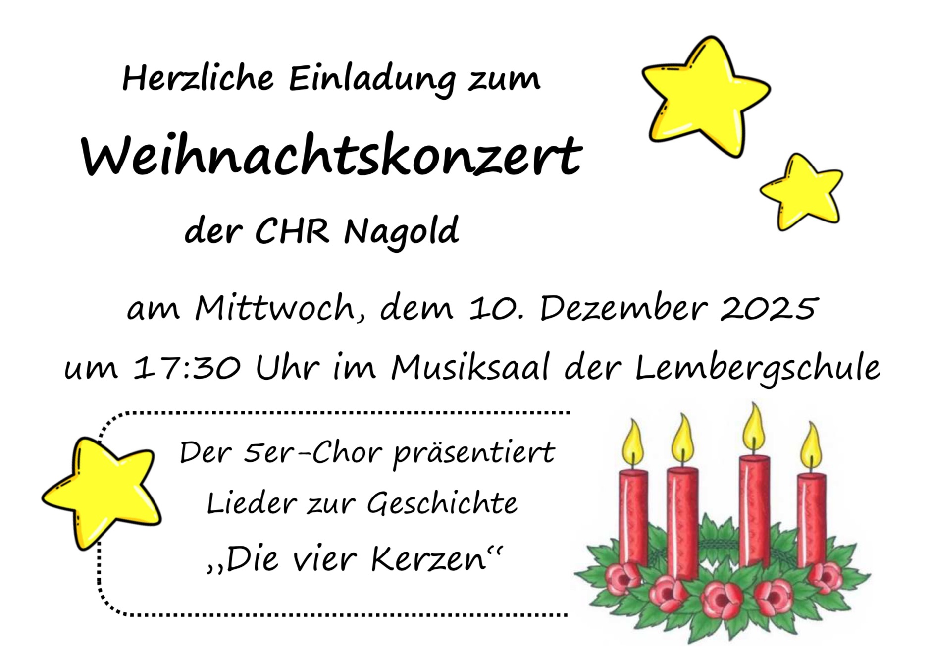 am Freitag, den 17. Juli 2026 feiern wir mit unserem aktuellen Abschlussjahrgang in der Stadthalle Nagold ab 19:00 Uhr deren Mittlere Reife (Einlass: ab 18:00 Uhr).